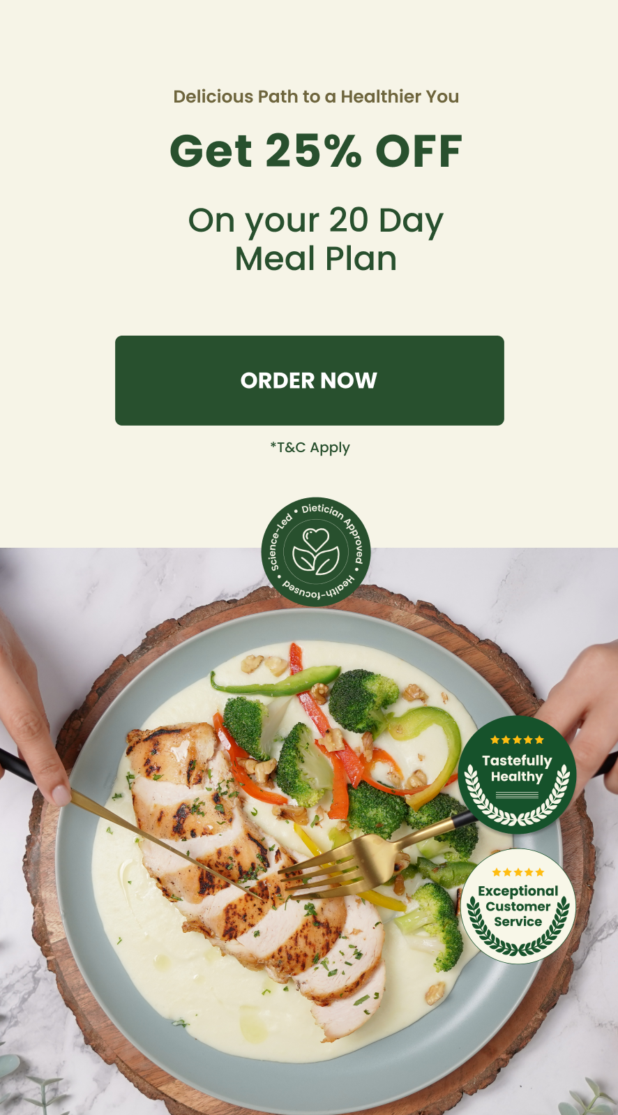 You are eligible for AED 75 OFF on your next renewal when you refer a friend, family or work colleague and they signup for a minimum of 20 days and atleast 2 meals.